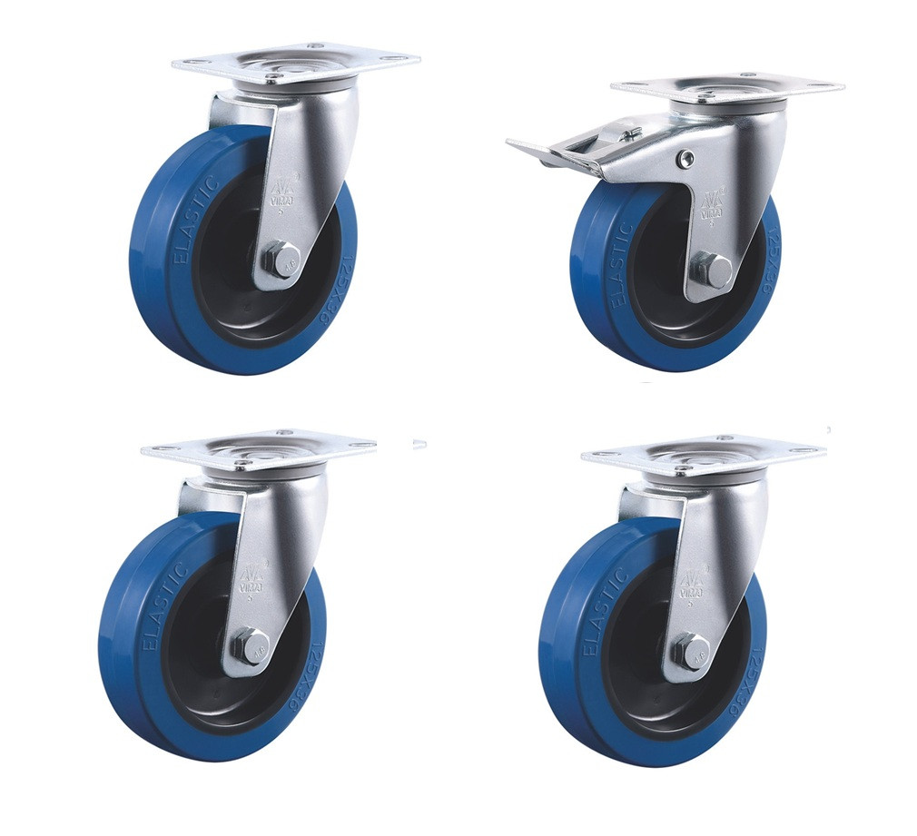 100mm Blue Elastic Swivel Castor Wheels Pack (2 Swivel, 2 Braked) - 540kg Load Capacity