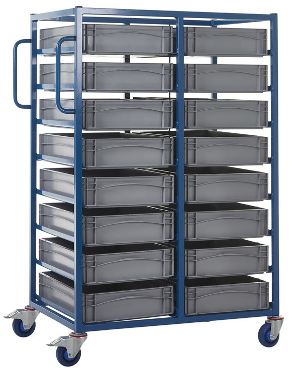 Apollo Double Width Ten Tray Rack Trolley with 44 Litre Containers - 250kg Capacity